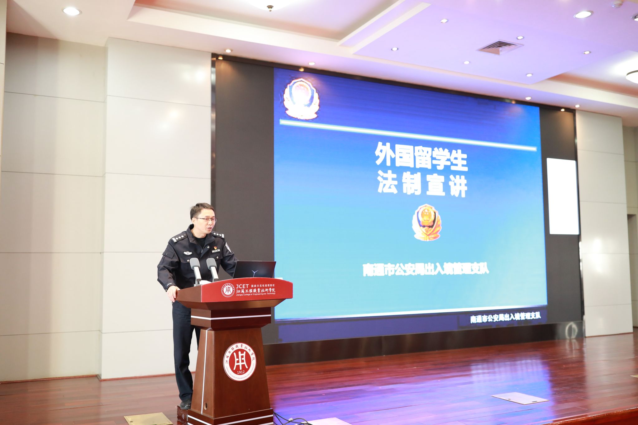 陆剑向留学生宣讲中国法律法规,详细讲解了护照、签证、居留许可等注意事项,强调了交通法规、非法就业、个人财产和人身安全等相关事项,增强了留学生的法律意识和法制观念。