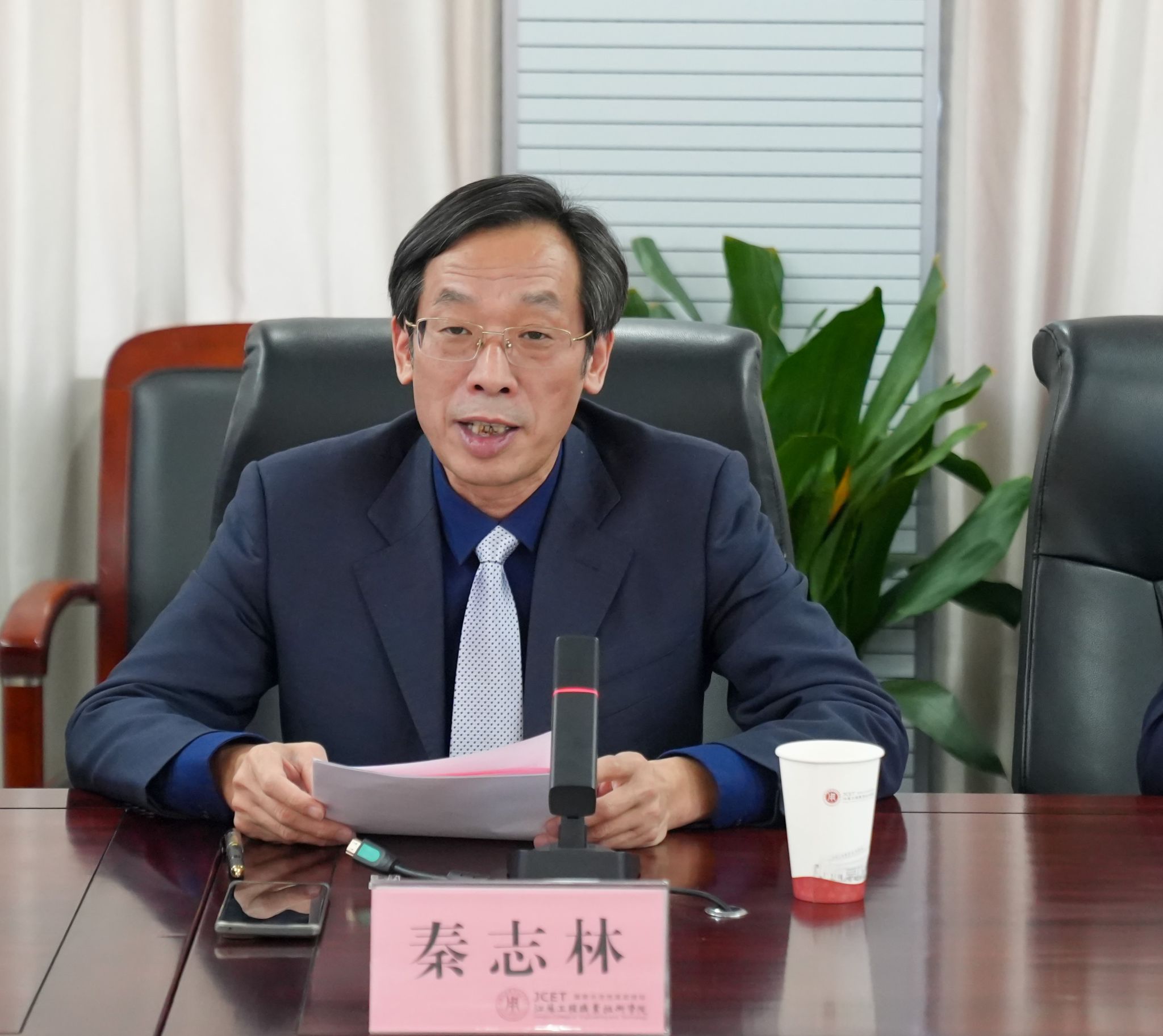 秦志林首先致辞。他向巴方介绍了我校秉承创始人张謇先生 “学必期于用,用必适于地”的职教理念、不断探索形成的“知行并进,学做合一”的高职人才培养模式和多层次多方向多模式的国际教育交流成果,感谢巴基斯坦驻华大使馆授予我校“中巴教育国际合作突出贡献奖”,感谢巴基斯坦旁遮普省职教局和费萨拉巴德省立技术大学对我校现代纺织技术专业职业教育标准的信任,期望通过四方合作的“CCTE现代化中巴双学历职业教育联合培养项目”助推中巴两国职业教育国际化高质量和数字化转型,以教育领域合作推动两国文明互鉴和民心相通。