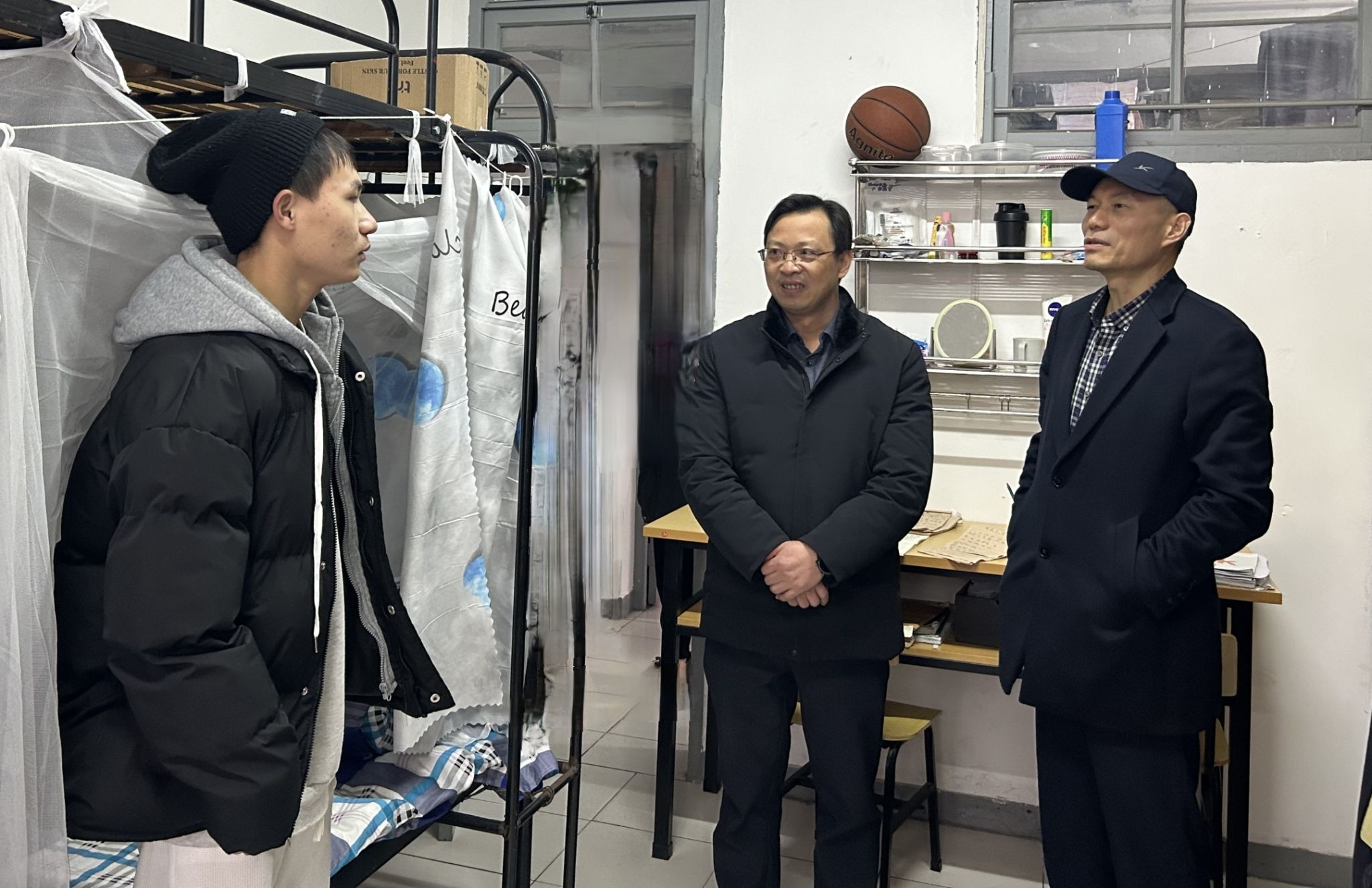 随后,许新海一行来到致知楼111教室了解经济管理学院国际贸易专业留学生复习备考的情况。最后,许新海和张忠深入留学生宿舍与他们亲切交流。交流中,领导们饶有兴趣地向多位学生询问来通后的生活感受、寒假的课余安排以及日常起居的相关细节问题。许新海为我校留学生的汉语交流能力频频点赞。张忠叮嘱同学们留校期间注意安全,度过一个平安、快乐、有收获的假期。