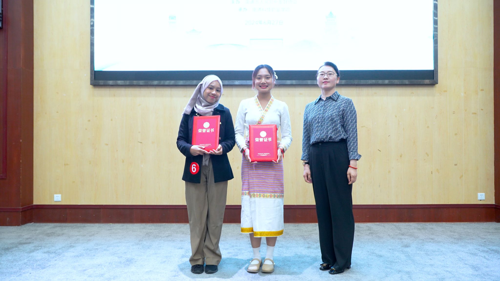 本次比赛以“信”为主题,来自老挝、越南、印度尼西亚、摩洛哥、南非等国的16名选手用流利的中文真情演绎他们与汉字、与南通、与中国的缘分,分享在中国刻骨铭心的动人故事,表达对中华核心价值观的感悟与共鸣。评委们根据选手的中文表达能力、现场感染力、故事阐述的核心价值观、文明互鉴成效等打分。最终,我校4名参赛选手均取得佳绩。经济管理学院留学生欣怡由袁玥老师指导荣获二等奖,经济管理学院留学生帕迪由张文捷老师指导、信息工程学院留学生杨娜由张红老师指导荣获三等奖,信息工程学院留学生飞铃由韦桐桐老师指导荣获优秀奖。