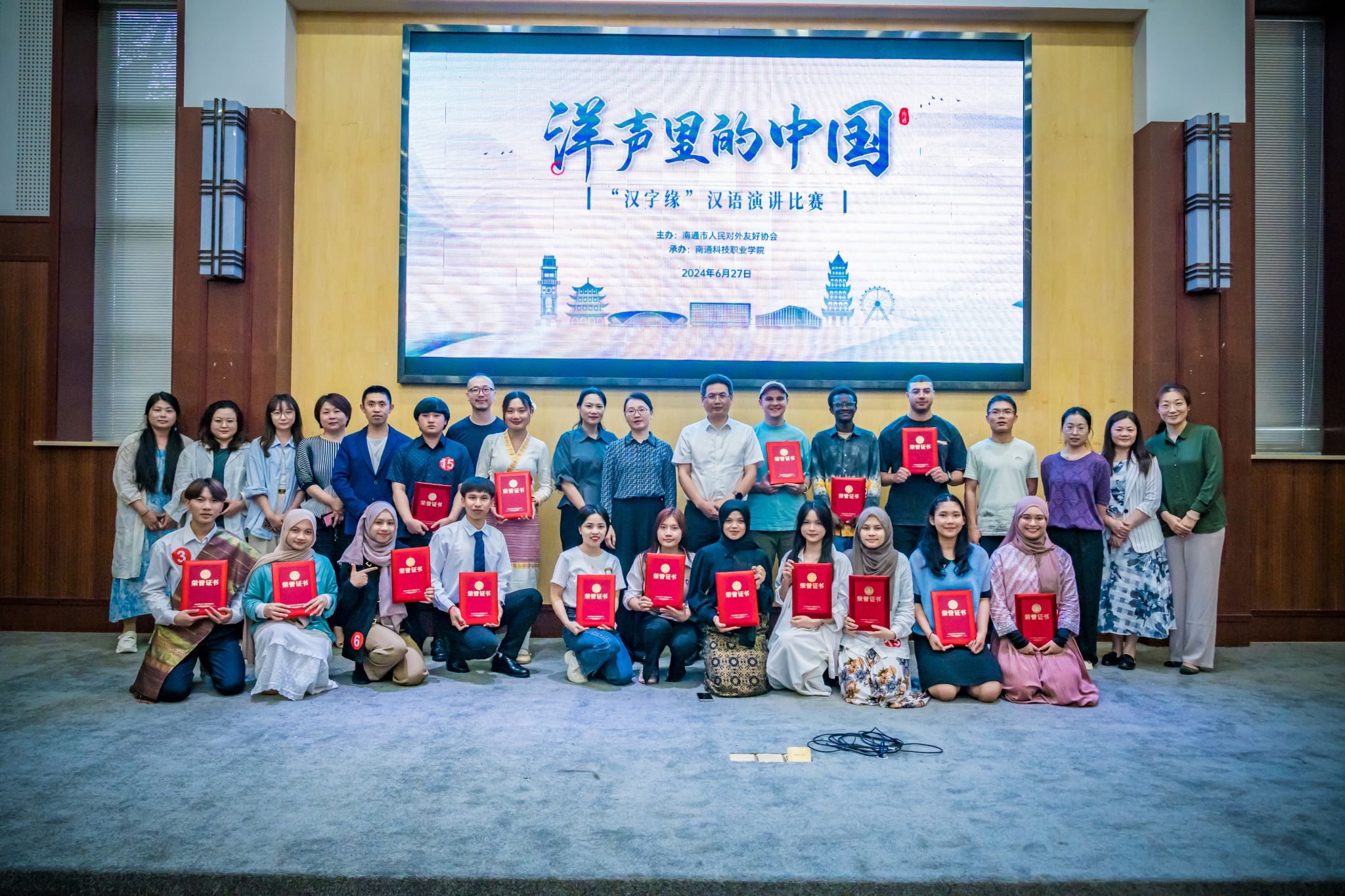 6月27日,由南通市对外友好协会主办的“洋声里的中国”—2024汉字缘汉语演讲比赛初赛在南通科技职业学院举办。南通市外办党组成员、市友协副会长曹明,南通市文化广电和旅游局四级调研员曹佩虹,南通市朗诵学会常务副会长、南通艺术剧院话剧团国家二级演员王美娟,南通市友协秘书长闵颖,南通科技职业学院国际教育学院院长彭璐出席了本次活动并担任评委。