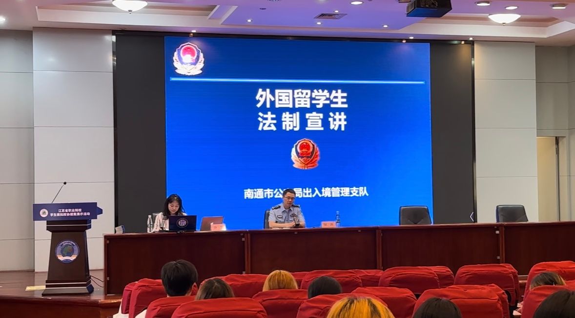 7月9日,南通市出入境支队陆剑警官来我校开展留学生法制宣传教育。学校160余名在校留学生参加了本次活动。活动由国际教育交流中心主办。