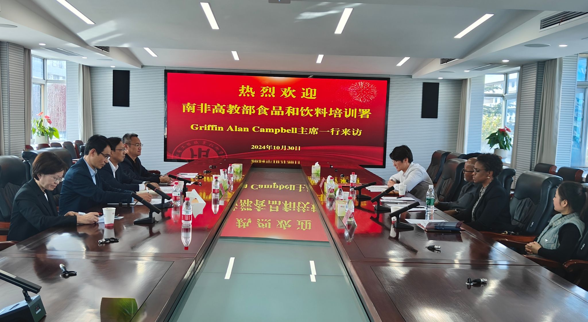 10月30日,南非高等教育与培训部食品与饮料培训署董事局主席格里芬·艾伦·坎贝尔,首席执行官诺库图拉·塞拉莫莱拉,南非中国文化和国际教育交流中心总经理陆嘉诚等一行来访我校,调研我校南非新能源项目实施现状。我校校长张忠、航空与交通工程学院党总支书记曹钰、院长贲礼进、项目负责人胡元群等与来宾进行了会谈。会谈由曹钰主持。