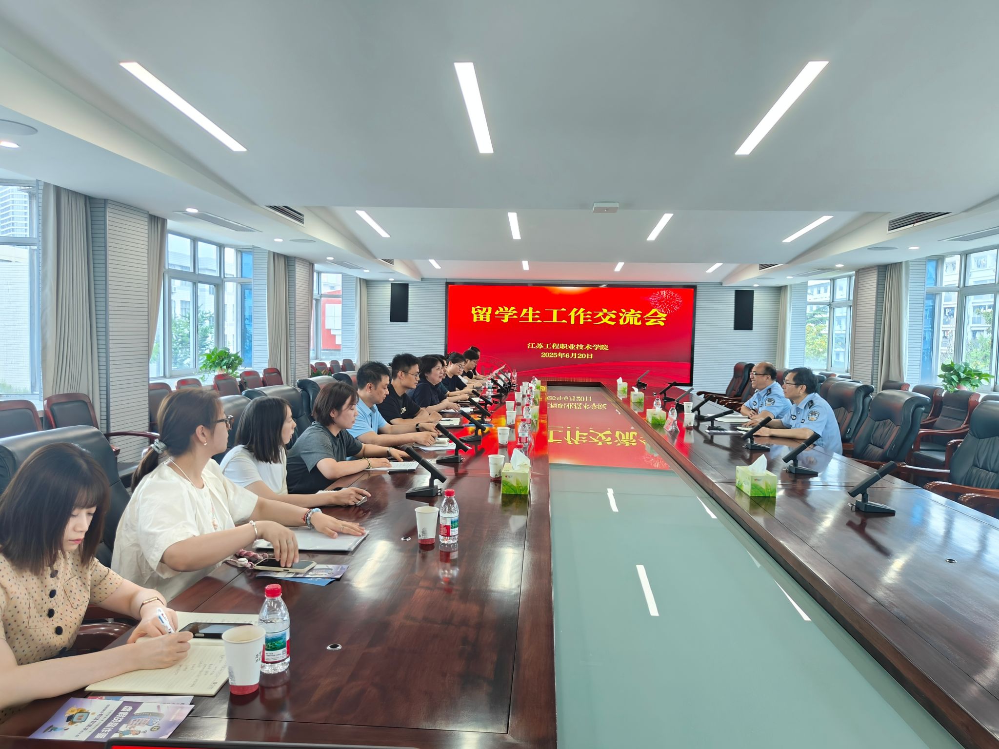 6月20日上午,我校召开2025年度留学生管理工作专题研讨会。本次会议聚焦新时代留学生教育管理提质增效,由国际教育交流中心主任吉利梅主持。会议特邀南通市公安局崇川分局出入境管理大队副大队长唐建张、学田派出所警官李永林作专题指导,我校6个二级学院分管副书记、全体留学生辅导员及班主任和国际教育交流中心全体工作人员参会。