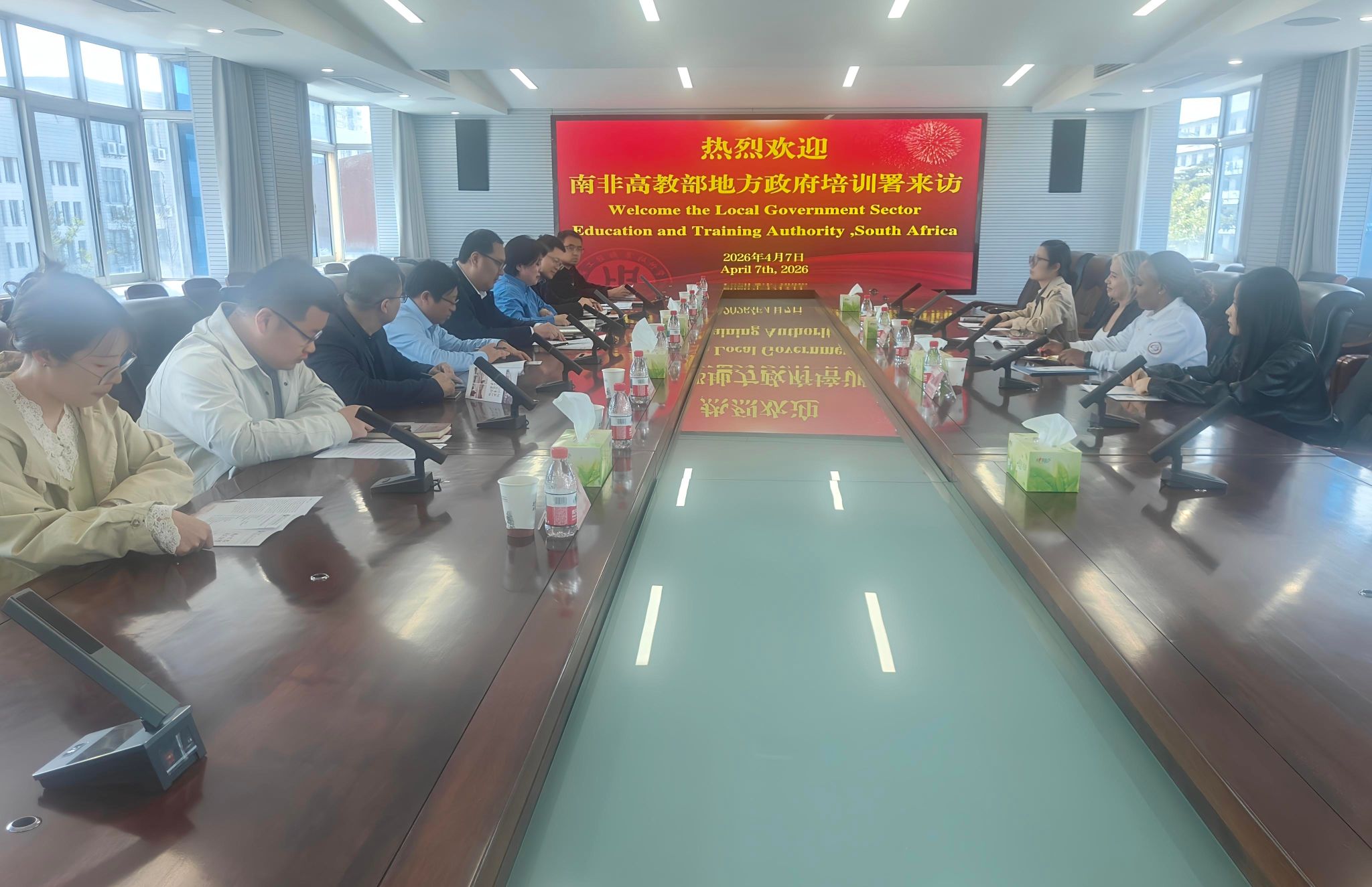 4月7日,南非地方政府部门教育与培训局项目经理Annemarie Prince、营销与通讯经理Nthabiseng Clara Vilankulu及南非中国文化与国际教育交流中心代表一行到访我校,围绕中南非可再生能源产教联盟、中国—南非郑和学院建设及南非政府奖学金项目留学生培养等事宜开展深度交流。副校长尹桂波、国际合作与交流处处长吉利梅及相关二级学院负责人、班主任代表出席活动。
